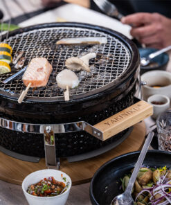 With the Shichirin, you can serve a delicious dinner where all your guests can enjoy (summer) gourmet food while being their own table chef! Shichirin is also very popular as a winter grill. Want to sit around the Shichirin with friends or family under a canopy? It’s all possible! The round Shichirin comes standard with a stainless steel grate perfect for preparing the tastiest Japanese dishes.