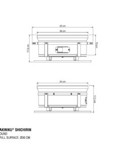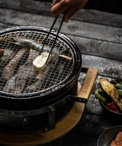 The round Shichirin’s grilling surface is 31 cm, ideal for cooking small pieces of meat, fish, and vegetables. Shichirin suits 4-6 people.