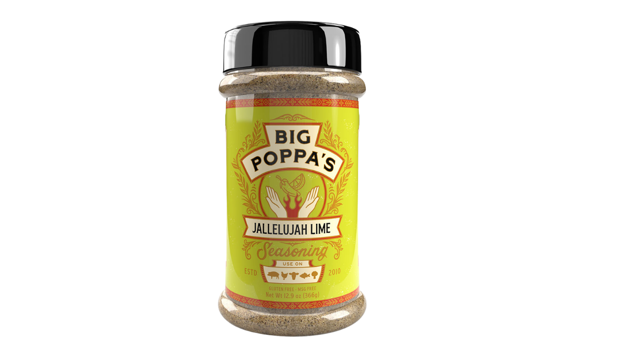 Big Poppa Smokers on USA BBQ-maailmas hästi tuntud nimi ning Jallelujah Lime on nende värske ja iseloomuga maitseainesegu, mis toob mängu tsitruselise särtsu ja kergelt vürtsika tasakaalu. Laim annab segule mõnusa happelisuse, mis aitab liha maitse eriti hästi esile tuua, samal ajal kui soolasus ja mahe vürtsikus hoiavad tulemuse tasakaalus.