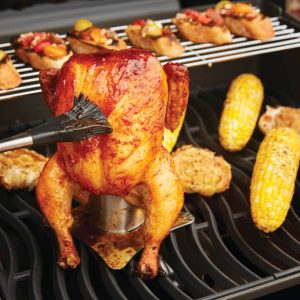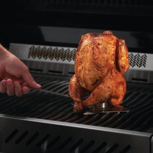 Napoleon roostevabast terasest, vedelikutopsi, tõstesanga ja pudeliavajaga kana röstialus. Sellega röstitud kana saab kordades mahlasem kui otsesel tulel valmistatud.